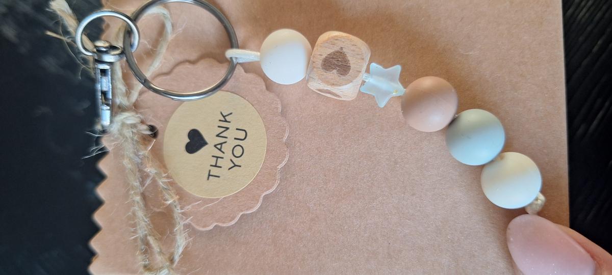 Samen met mijn regenboogkindje, mijn dochtertje Elin (2,5 jaar), maken wij sleutelhangers voor sterrenkindjes. ✨